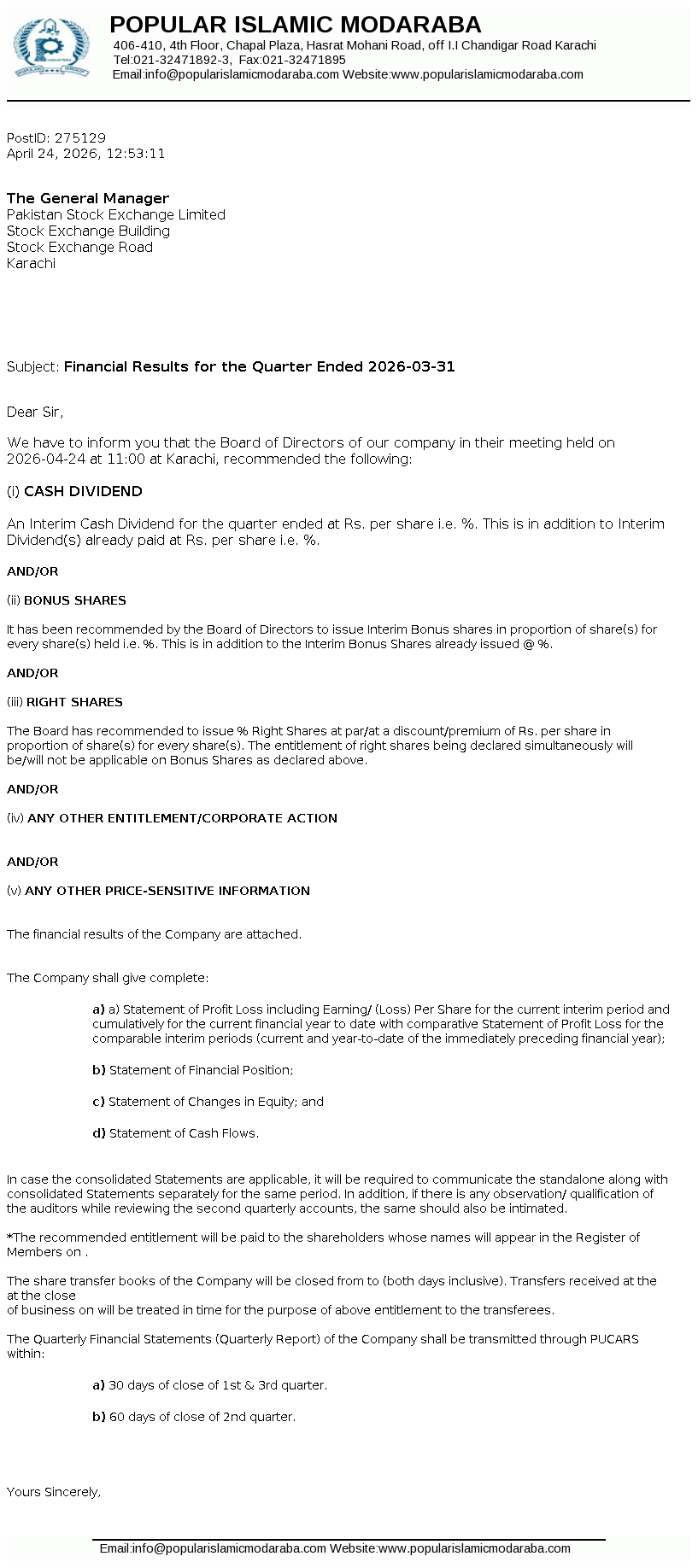 Latest Dividend